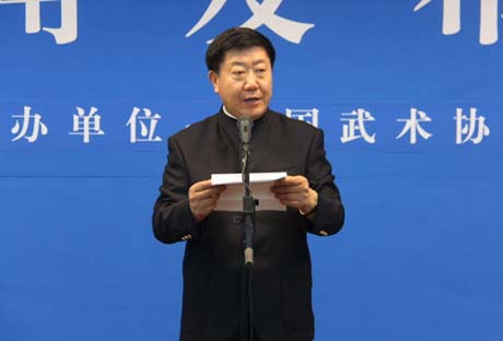 在2013年“全民健身日”到来之际,国家体育总局在京发布中国武术段位制推进情况。国家体育总局副局长肖天出席发布会并讲话。